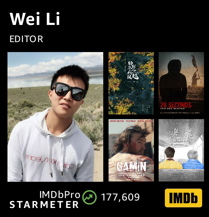 Wei "Will" Li is now a film editor and currently working as a supervising assistant editor at Ignition Creative. Will is proud to be editing the horror feature BURROW, as well as a Chinese feature film, and serving as post-production manager for the feature documentary 26 Seconds. He also contributed as an assistant editor on the acclaimed documentary Like A Rolling Stone: The Life and Times of Ben Fong-Torres. He graduated with an MFA in Film Production, Editing emphasis at Dodge College of Film & Media Arts. Will was selected to participate as a Pankey Scholar at Chapman University to work one-on-one with an excellent visual effects supervisor, Jeffrey Kleiser. Propelled by his interest and earnest attitude, Will is convinced that a filmmaker needs an affluent background and experience to create more intriguing works of art.